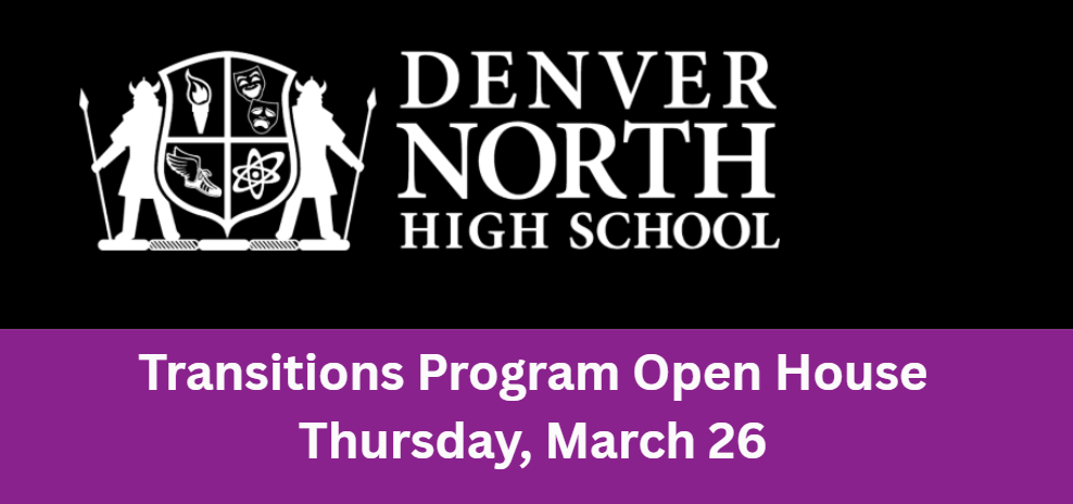 The open house will take place on Thursday, March 26, from 5:00 p.m. to 7:00 p.m. at North High School, 2960 Speer Blvd, Denver, CO 80211. DDRC staff will be there to share information about the many programs and services available to help students and families plan for the future.